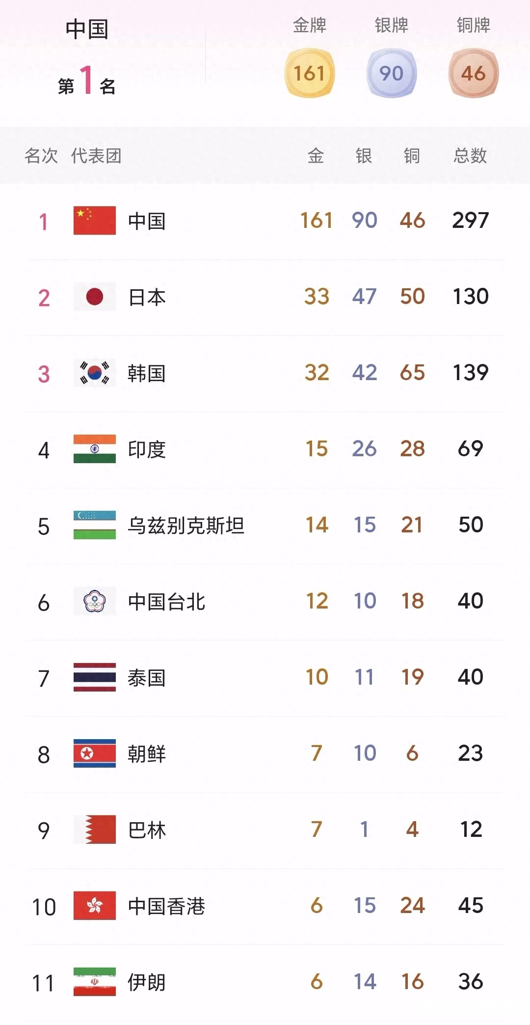 你怎么看目前最新的亚运会奖牌榜?欢迎在评论区讨论。