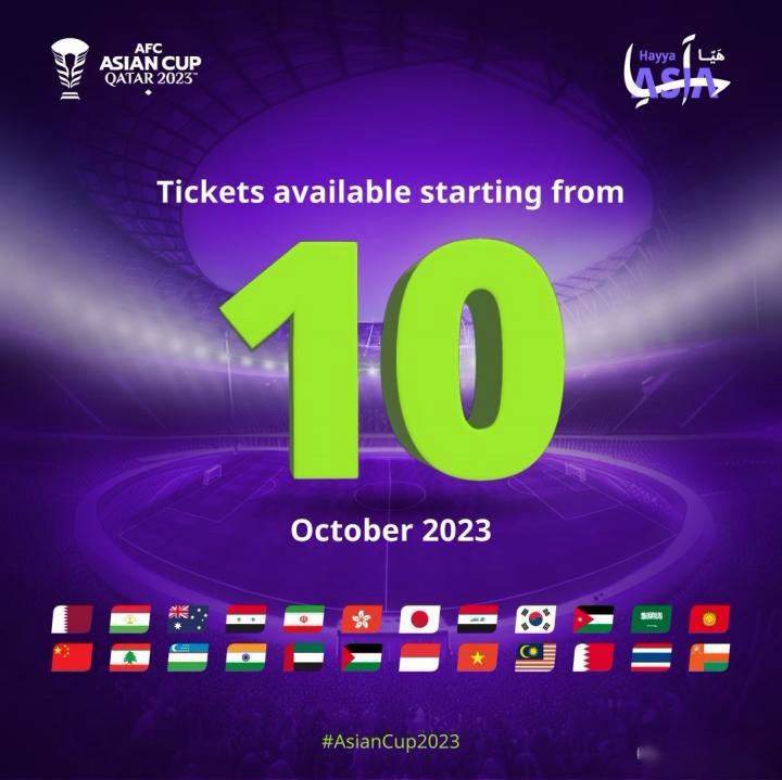 2023卡塔尔亚洲杯将于明年1月中旬正式打响,官方公告表示,自10月10日起,球迷便可通过 卡塔尔亚洲杯官方网站(http://asiancup2023.qa/en) 购买自1月12日揭幕战至2月10日决赛的全部51场比赛的门票,卡塔尔境外居民也可通过该网站购票,并可自行打印球票或以电子票形式入场。