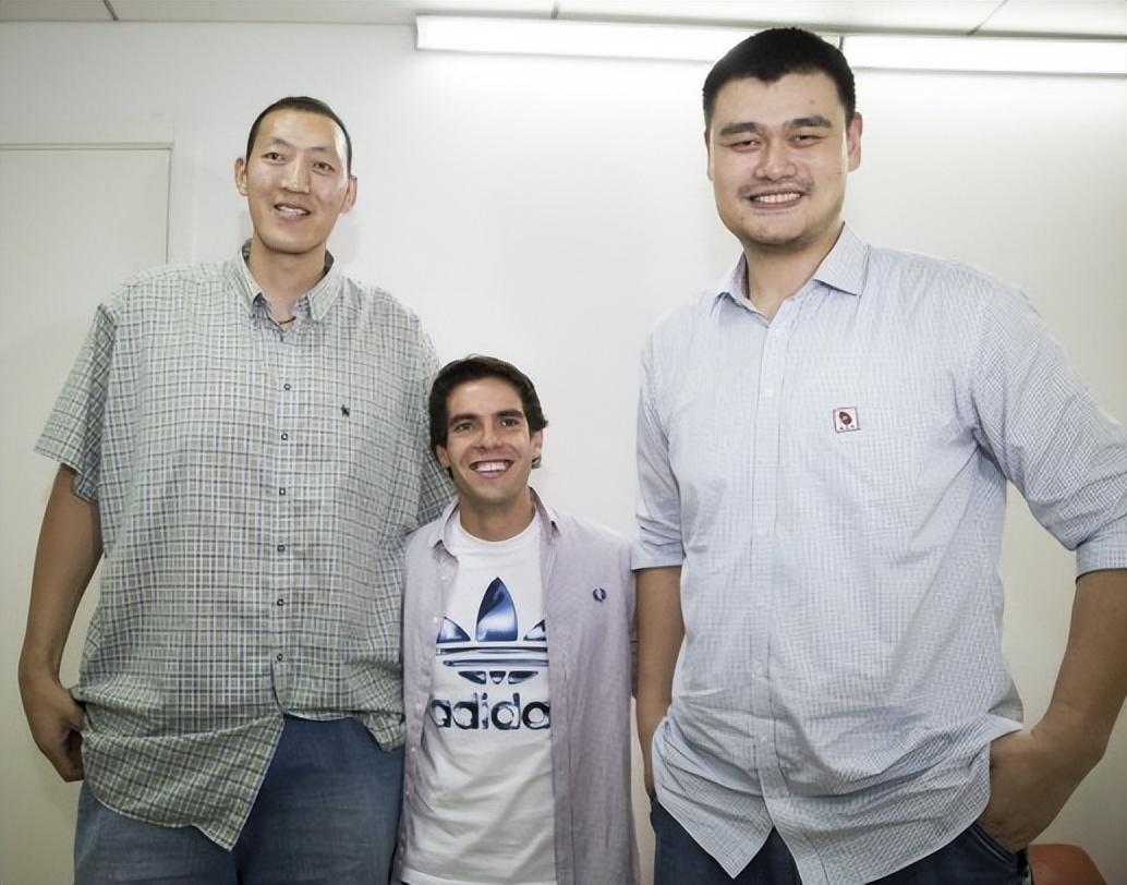 孙明明官方身高2米36,理论上是比姚明高10cm,两位都是中国男篮的巨人,自然有过同框。这次合影还加入了巴西足坛队草卡卡,1米85的卡卡在两位巨人中间,感觉只有1米6。而姚明也感觉没有矮孙明明10cm,肯定是2米26往上的身高。