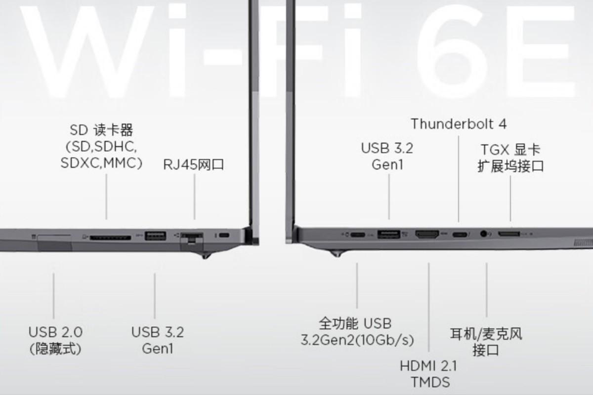 扩展接口部分,笔记本延续了家族化的设计,有一个隐藏式USB2.0接口用来插鼠标接收器。除此之外配备了2A2C规格,包含了1个雷电4接口。加上HDMI、网卡这些,以及SD读卡器,基本上足够用了。另外它还有一个显卡扩展坞接口,但感觉没什么用处。