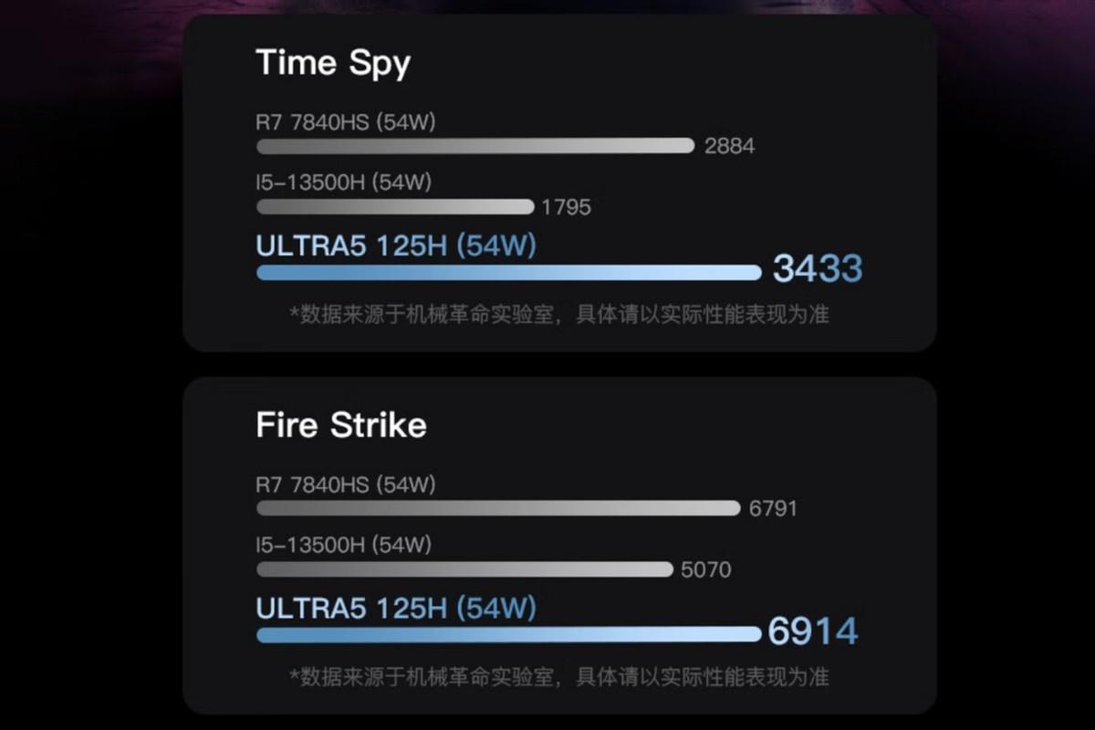 那最大的难点估计也就是选择酷睿Ultra5-125H还是锐龙7-7840HS了,机械革命官方也并没有直接拿来对比。其实网上有很多第三方对比可以参考,结论基本可以总结为酷睿Ultra5-125H确实很强,但也没达到能超越锐龙7-7840HS的程度,论CPU性能还是AMD更好。