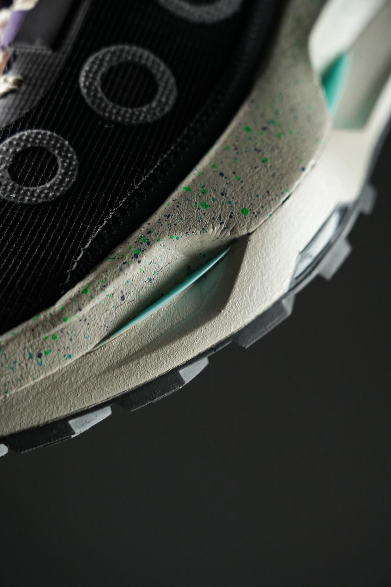 雨燕身上有着很标志性的设计语言——就是外露的尼龙板,再配合上它的名字“雨燕”就是希望使用者能够在户外场地行走时能够身轻如燕。