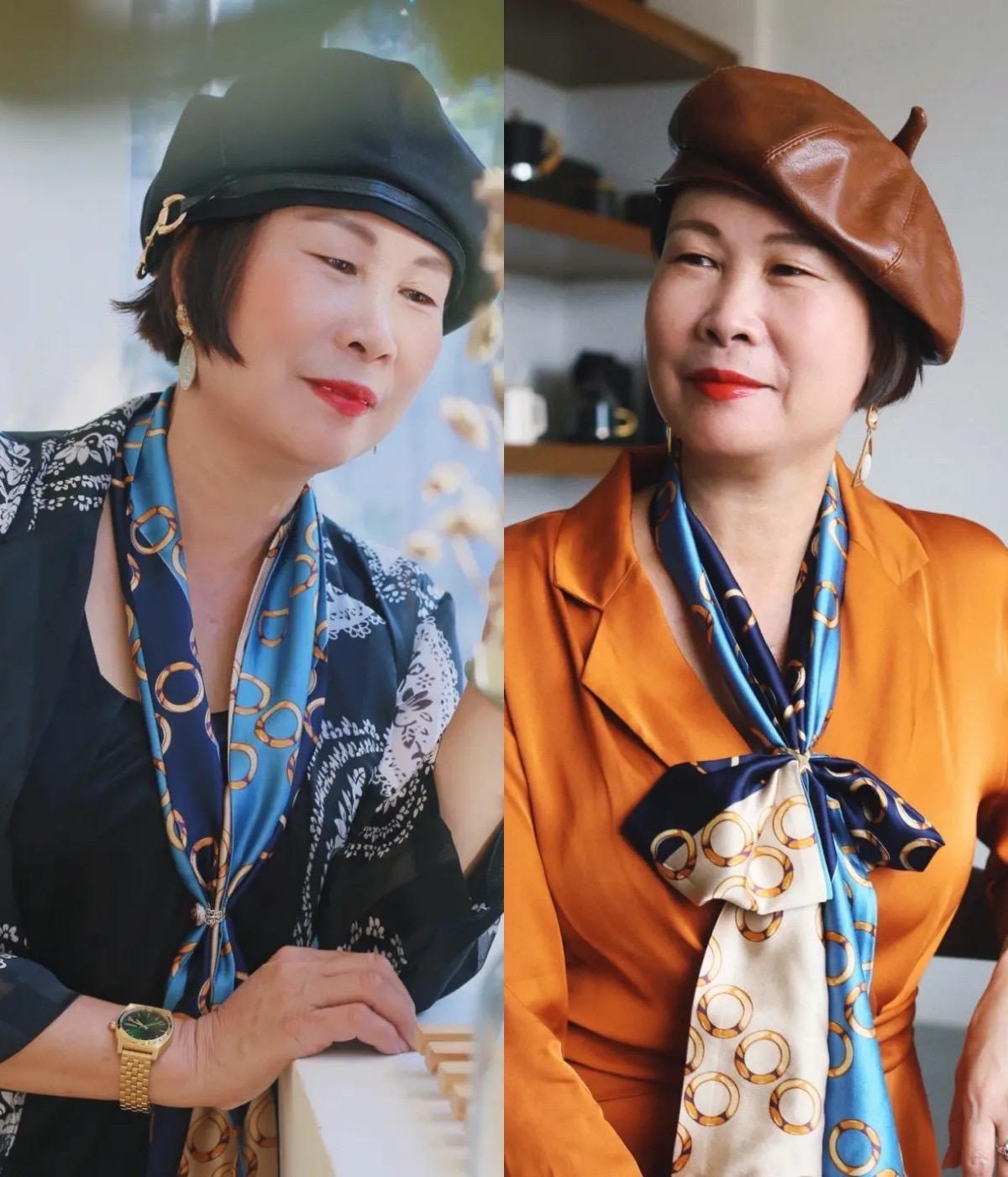 在中国大妈的穿搭中,帽子与丝巾经常同时出现在造型中,配饰的组合提升了造型精致度和时髦感,但是也要懂得正确搭配。帽子与丝巾 “繁简搭配” ,丝巾可以佩戴在脖颈位置,或是档做腰带来使用,这样才能更好地提升穿搭品味。