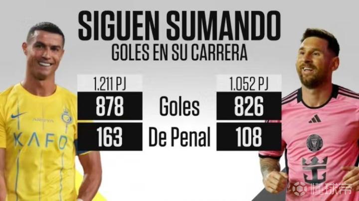 在今天的中北美冠军杯比赛结束后,ESPN统计了梅西和C罗职业生涯至今的进球数据。其中C罗出战1211场比赛,打进878粒进球,其中包括163粒点球;梅西出战1052场比赛,攻入826球,其中包括108粒点球。