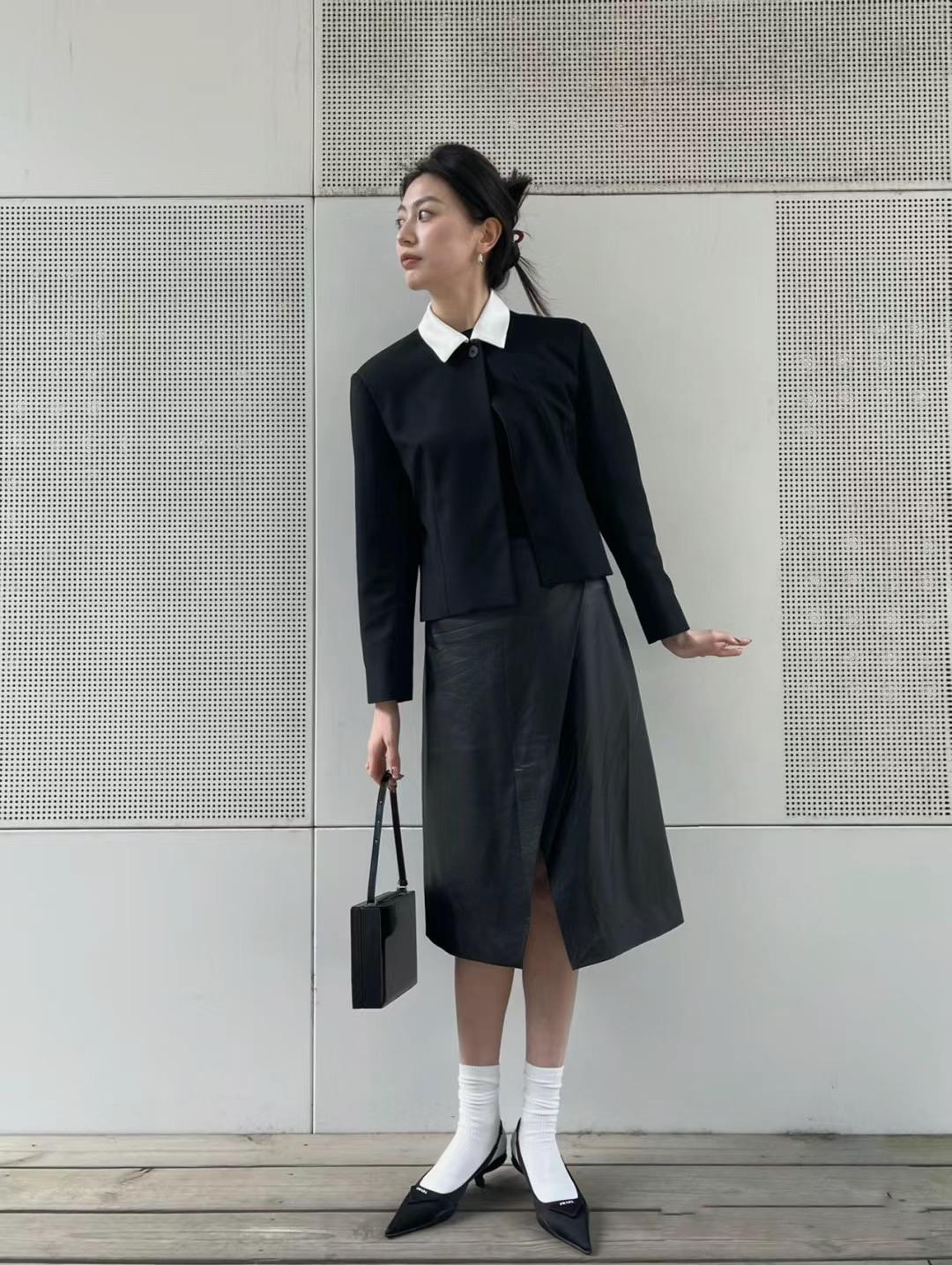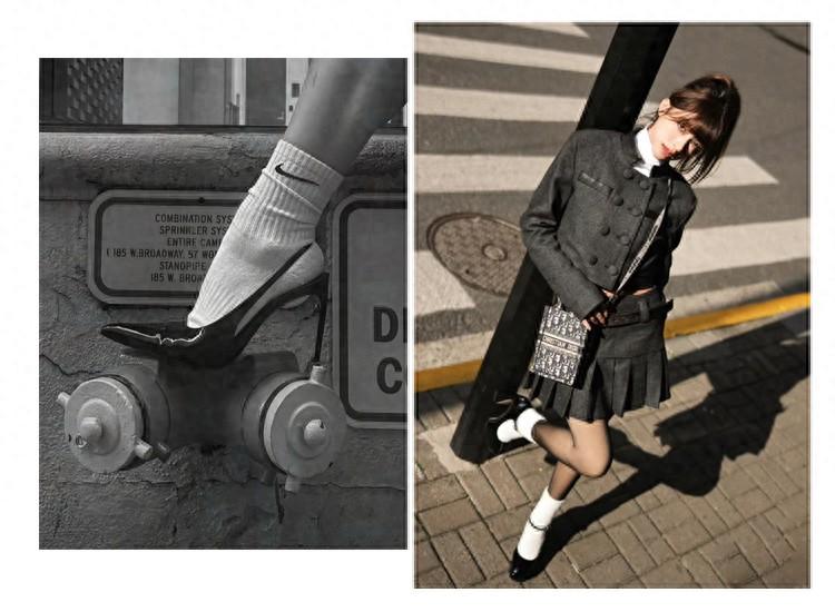 谁说“高跟鞋+白袜”穿搭只能诠释性感时髦风?切换不同的服装单品,也能展现出女生的优雅知性。比如短款翻领外套配半身裙,基础款+基础色,让整体造型看起来简约又高级,白袜与高跟鞋的组合,反倒成为了点睛之笔。