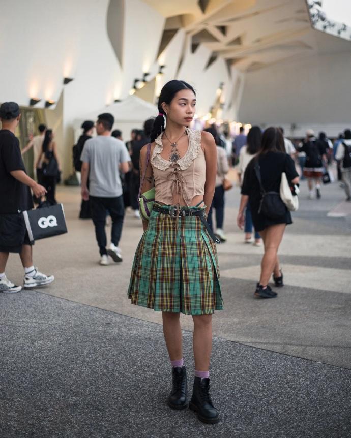 然而,随着近年来 Miu式穿搭 的流行,以及 各大品牌纷纷让“露内裤”穿法走向T台、秀场 ,这种穿搭也被应用到了日常穿搭中,尽显个性与时髦。