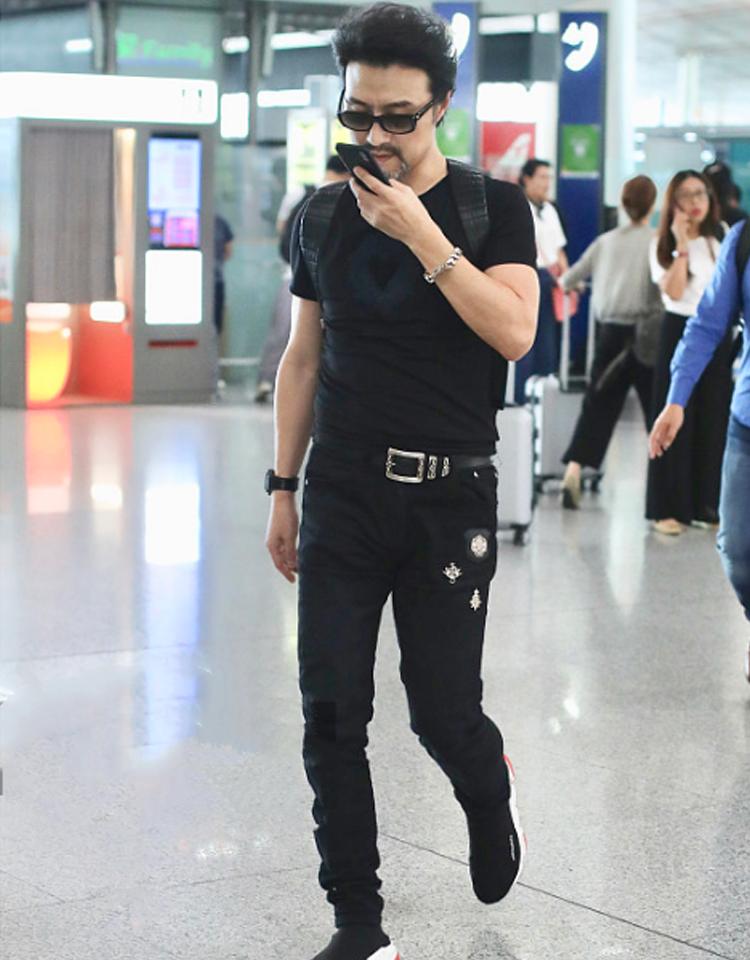 “T恤+紧身裤”,典型的精神小伙搭配,应用于中年男人穿搭中,则增加了气质上的油腻感,整体给人 廉价、俗气、土气 的印象。