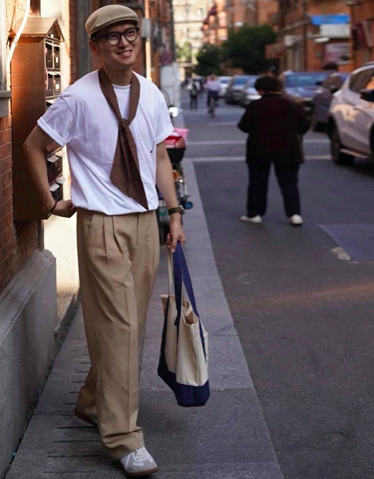 基础款造型,为配饰提供了充足的展示空间,因此在“T恤+裤子”的穿搭种,可以在造型基础上增加 帽子、丝巾、眼镜、手表、包包 配饰作为点缀,让简约的服装显得更有质感,同时也凸显了整体穿搭的精致时尚度。