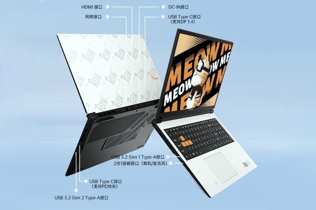 这款游戏本是MEOW R16,是一款新配置的机型。此前我们介绍过MEOW R15,尤其是橘黄色的版本,笔记本整体设计贴合了橘猫的主题,产品配置满血,价格也便宜。