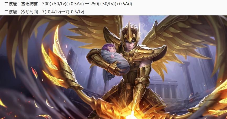 后羿削弱: 2技能的伤害减少50点,2技能的CD增加0~0.5秒。 (跟随技能等级变化)