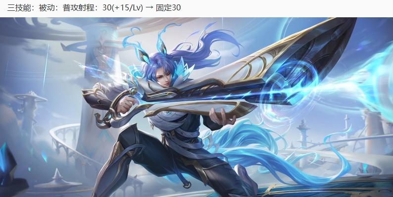 百里守约削弱: 大招被动增加的射程减少0~30,即2级大招比之前减少15点射程,3级大招比之前减少30点射程,最终射程为855点。 (跟随技能等级变化)