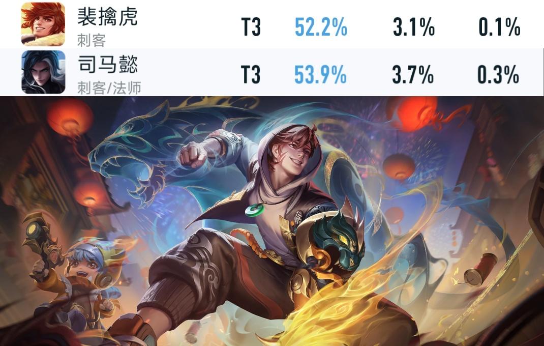 裴擒虎 由于大招移速降低,其 排位胜率已从52.7%下跌至52.2% ; 司马懿 由于1/3技能削弱,其 排位胜率已从54.5%下跌至53.9% 。