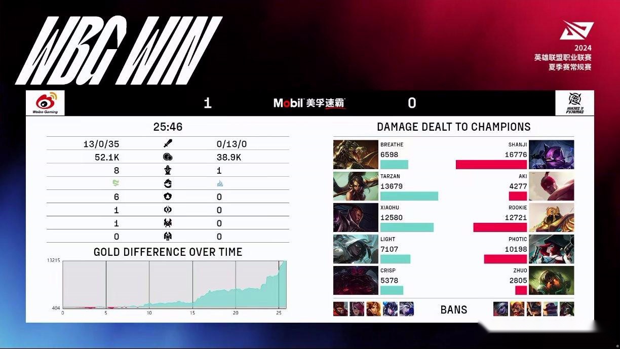 LPL夏季赛组内赛登峰组WBG和NIP的BO3,双方大战2局之后,WBG以2-0的战绩击败NIP,拿下比赛的胜利,同时也送给NIP三连败。因为NIP目前在登峰组连一个小场的胜利都没有拿下,糟糕的表现引发了大量粉丝的不满和吐槽。