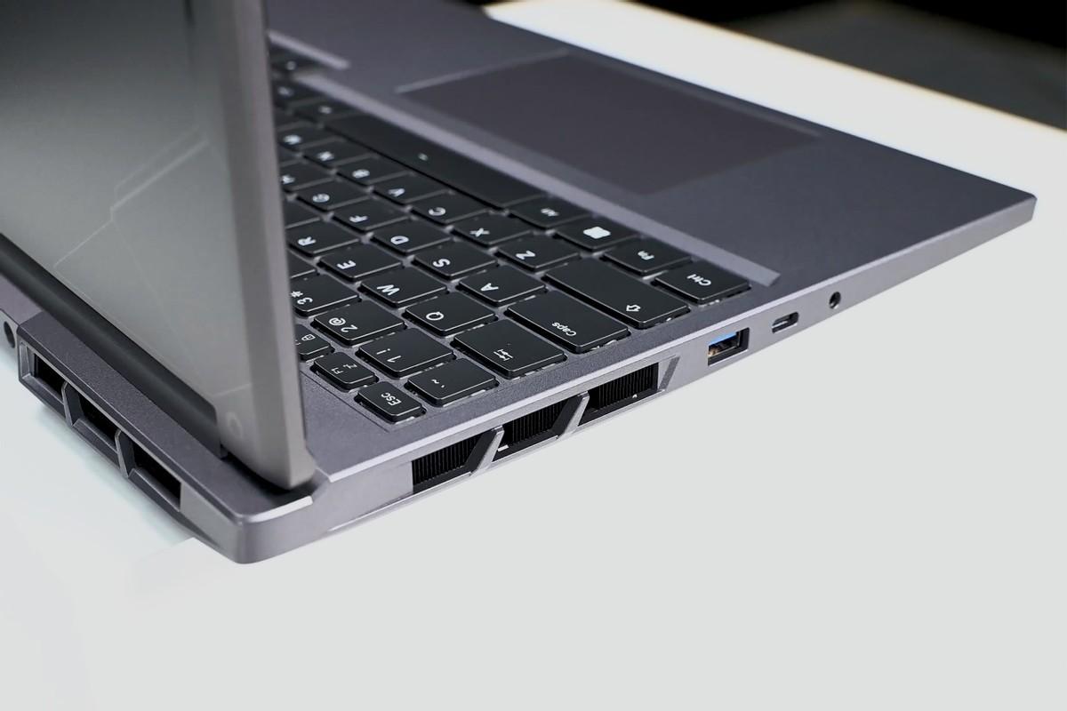 机械革命极光X还配备了完整尺寸的键盘,方向键一点没有缩水,而且有完整的数字输入区,对于游戏小伙伴来说这个设计还是相当给力的。