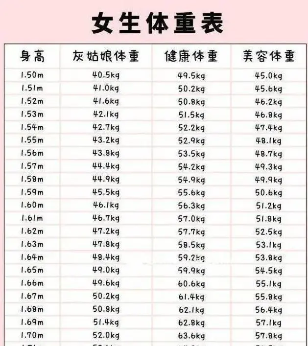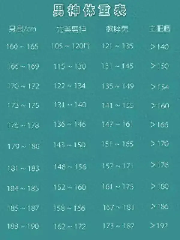 你的体重是否超标? 我们来看看一份表格,身高160-180cm的男生对应的体重分别是多少,看看你是否真的超重了?
