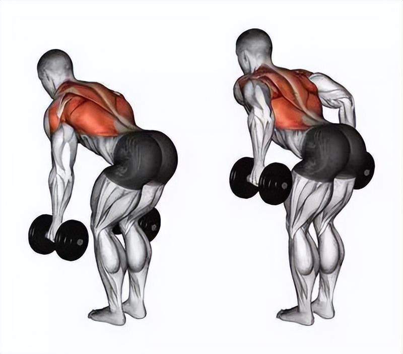 动作 1、俯身哑铃划船: