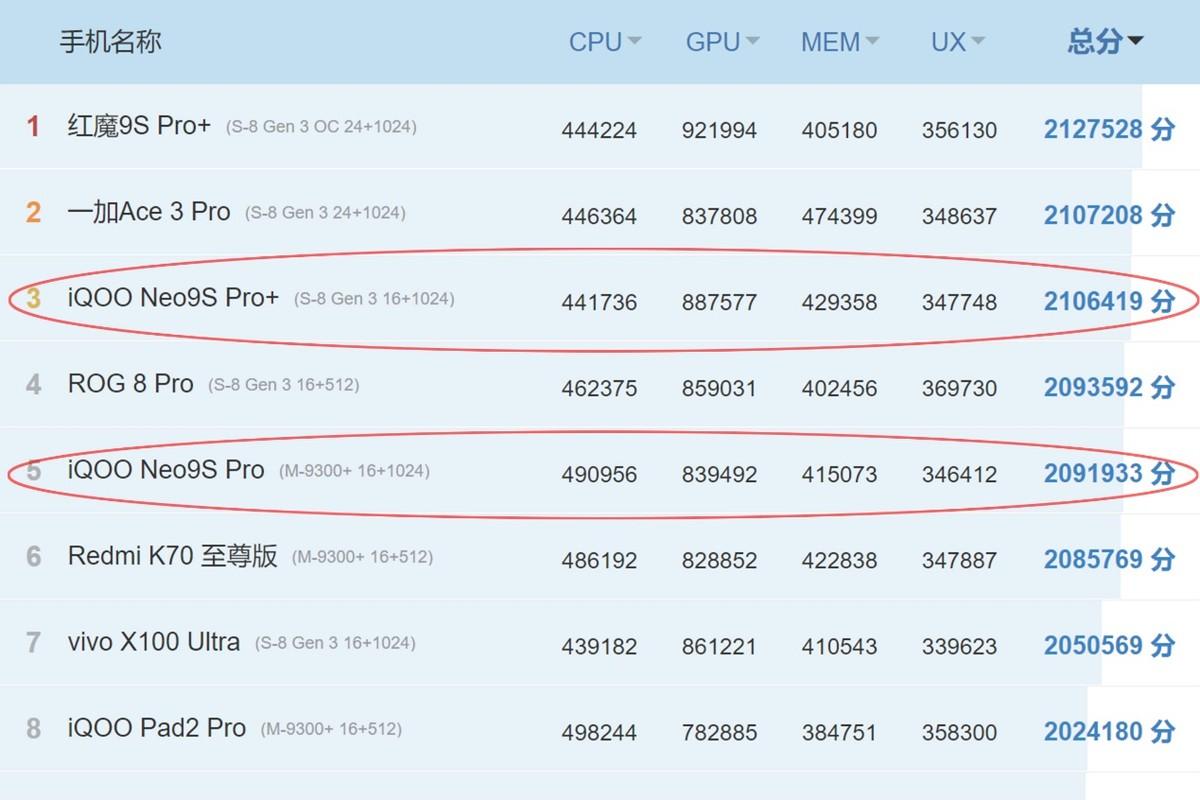 在今年5月和7月,vivo分别推出了iQOO Neo9S Pro和iQOO Neo9S Pro+两款手机。两款手机分别采用天玑9300+和骁龙8 Gen3芯片,其他规格相差不大。那这两款手机相差多少钱呢?好像也没相差多少。