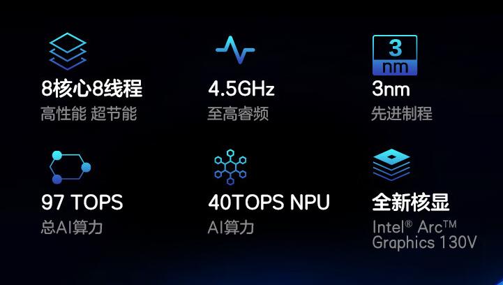 显卡是Arc Graphics 130V,7个Xe2核心,1.85GHz。