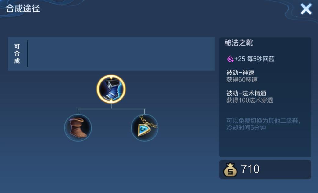 秘法之靴 : 提供回蓝和法术穿透,在前期的作用最大, 只适合法伤英雄使用,基本就是法师的专属鞋子了。