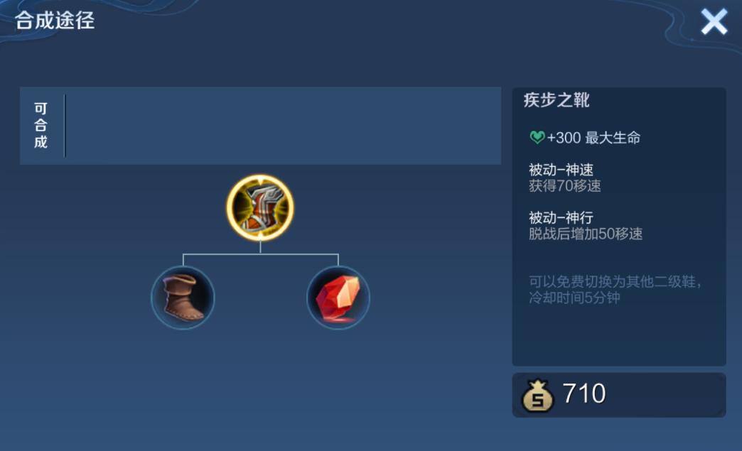 疾步之靴: 增加脱战移速和最大生命,且比其他鞋多10点基础移速, 适合频繁游走的英雄,比如中单法师、游走型辅助、游走型打野。