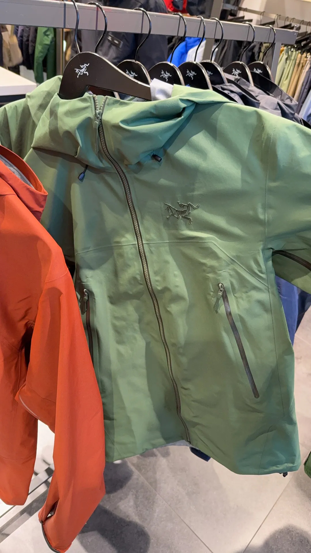可拆卸式的羽绒服,拆掉袖子可以直接当作马甲来穿,还有他们家的冲锋衣,采用 自研防水面料 AURORA-TEX, 偏廓形设计对身材的包容性非常高。