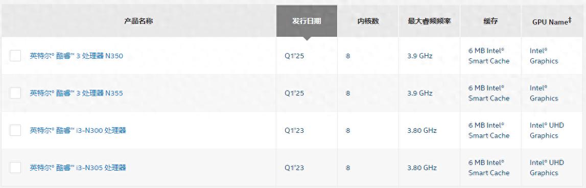 相比之下,i3-N305则是Alder Lake-N架构,CPU频率和GPU频率各低了0.1GHz。这么看,这次升级有点普通,但不用着急下结论。