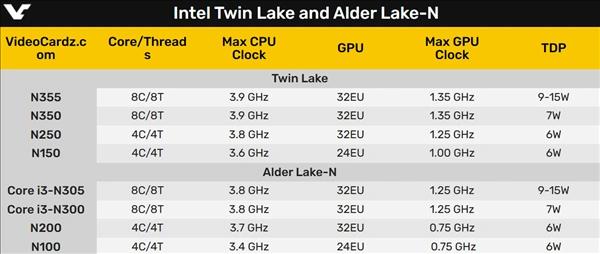 先说说这个i3-N355,其属于 Twin Lake核心, 采用了8核心,8线程,最大频率 3.9 GHz,9-15W功耗。此外,显卡是Intel Graphics,1.3或1.35GHz,32个执行单元。