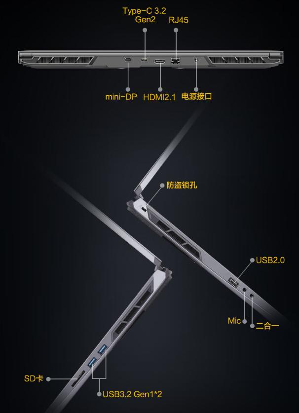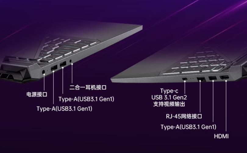 接口有3A1C,还有网卡接口。网络Wi-Fi 6,有53Wh电池。