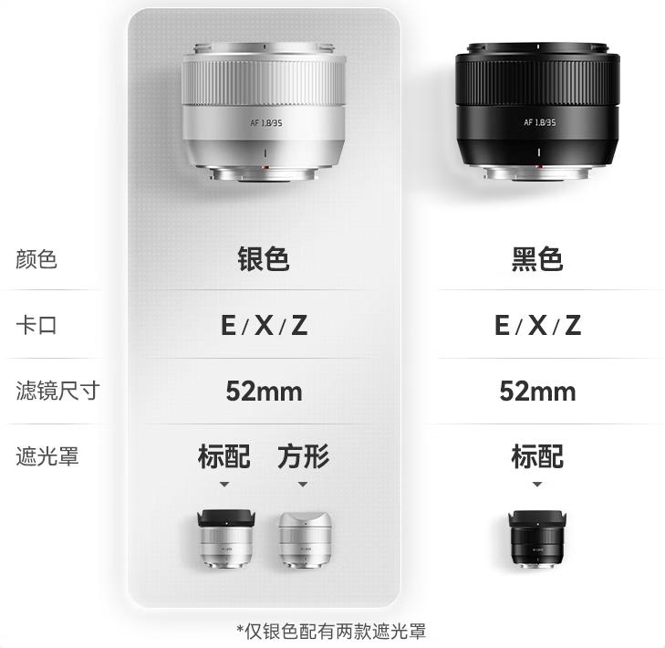 其有银色和黑色款,卡口包含E口,X口,Z口,自动对焦,态度还是很恳切的。