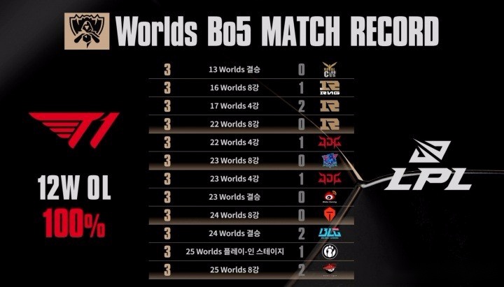 这场比赛之后TES和T1都刷新了记录,T1是继续保持着世界赛对LPL战队BO5全胜的记录,不管队员怎么更换,也不管T1今年实力如何,在世界赛的舞台面对LPL战队,T1总能找到制胜的方法。
