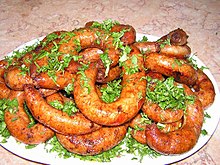 法布雷加斯最爱阿拉伯菜mombar, 它由绵羊肠或牛肉香肠塞满米饭混合物并油炸而成。