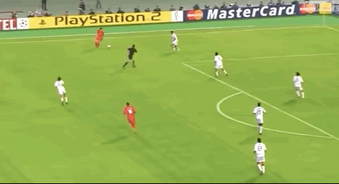 第44分钟,卡卡于中圈附近巧妙地把球溜过欲拦截的杰拉德,并立即把球直传给克雷斯波,克雷斯波把球挑过出击的杜德克,帮助AC米兰将比分优势扩大为3-0。