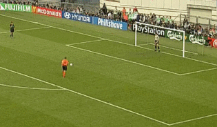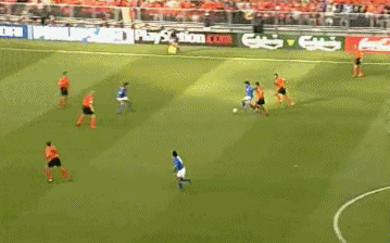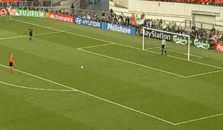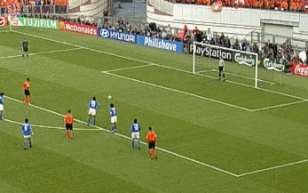 比赛第38分钟,内斯塔禁区内拉拽克鲁伊维特犯规,裁判直接判罚点球!随后弗兰克-德波尔操刀主罚将球打向球门右侧,托尔多飞身将球扑出!
