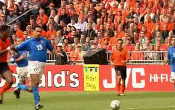2000年6月29日,欧洲杯半决赛的第二场比赛在阿姆斯特丹球场打响,由意大利对阵荷兰。上半场,博格坎普低射中柱,赞布罗塔染红离场,弗兰克-德波尔点射被托尔多扑出;下半场,荷兰再获点球,克鲁伊维特点射中柱,德尔维奇奥打门被挡出。双方常规时间0-0战平,比赛进入加时赛阶段。