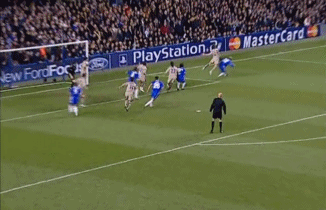 第12分钟,切尔西开出右路角球造成禁区混乱,特里头球摆渡,兰帕德门前侧勾打门打高错失良机。