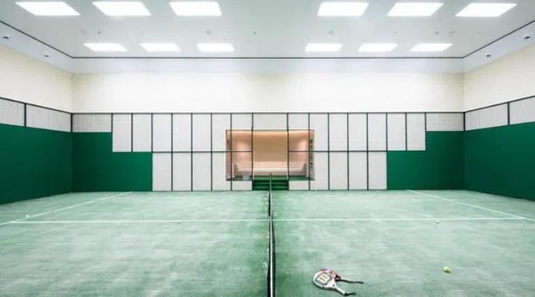 据了解,这个网球场长20米,宽10米,高度达到6.65米。这也是为刘易斯和他的客人们设计的。