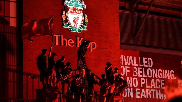 上周利物浦夺冠后安菲尔德外出现的大规模集会场景(图片来源:天空体育)